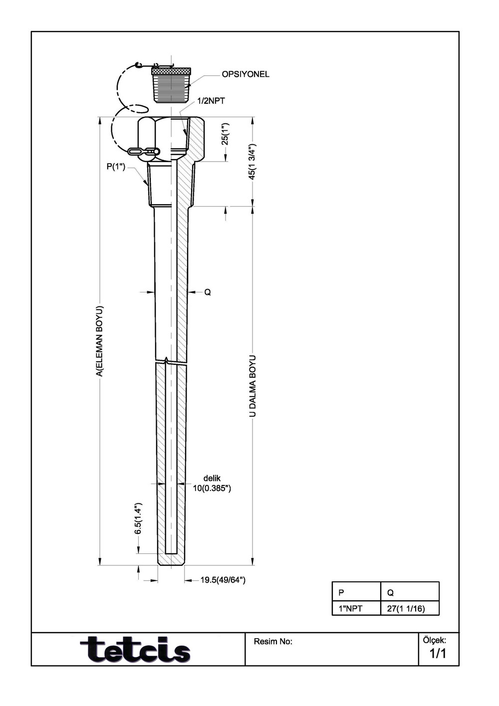 1. Daldırma Tipi Termowell (Threaded / Vidalı Tip)
