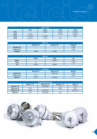 %u00d6ZG%u00dcL HAC%u0130Mft3/lbgal/lbcm3/gm3/kgft3/lb17,4805562,4280,062428gal/lb0,1336818,345380,008345cm3/g0,0160180,11982710,001m3/kg16,018463119,82710001%u00d6ZG%u00dcL ISIBtu/(lb.ft.0F)Cal/(s.cm.0C)KJ/(kg.K)Btu/(lb.ft.0F)114,1868Cal/(s.cm.0C)114,1868KJ/(kg.K)0,238850,238851ENTALP%u0130Btu/lbCal/gJ/gBtu/lb10,555562,326Cal/g1,814,1868J/g0,429920,238851%u0130LETKENL%u0130KBtu/(h.ft.0F)Cal/(s.cm.0C)W/(m.K)Btu/(h.ft.0F)10,00413381,7307Cal/(s.cm.0C)241,911418,68W/(m.K)0,57790,0023881ISI TRANSFER KATSAYISIBtu/(h.ft2. 0F)Cal/(s.cm2.0C)Kcal/(h.m2. 0C)W/(m2 K)Btu/(h.ft2. 0F)10,000075352,7123,154Cal/(s.cm2.0C)1327213600041870Kcal/(h.m2. 0C)0,36870,0000277810,00011163W/(m2 K)0,3170,000023880,86167www.tetcis.com.tr